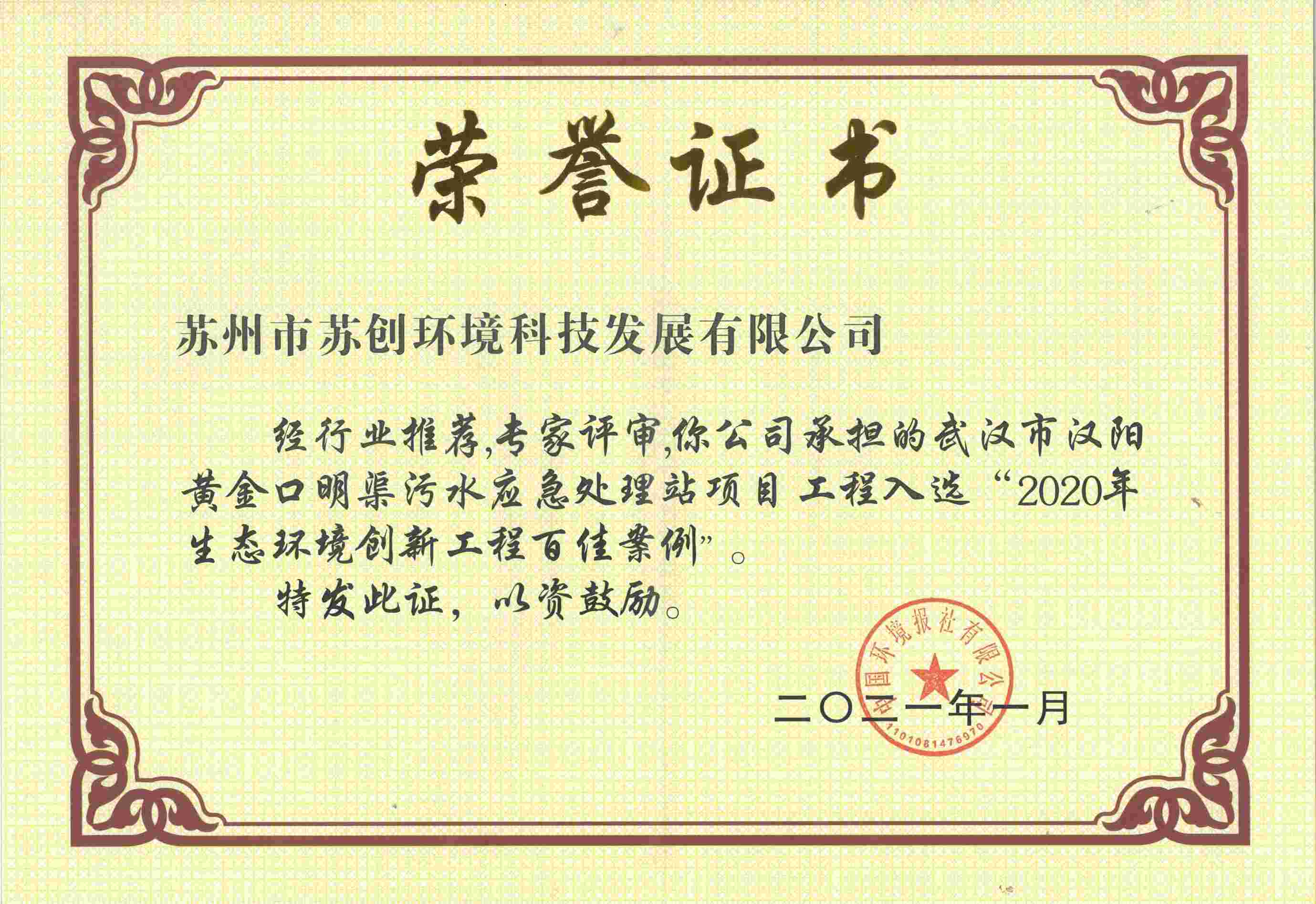 磁分離+反硝化+曝氣生物濾池一體化裝備 采用磁沉淀和曝氣生物濾池相結合的水體凈化工藝蘇創環境 · 專利與榮譽成果